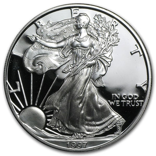 1997 P Proof Silver Eagle Dollar, 1oz .999 Fine Silver $1 Coin with Box & COA