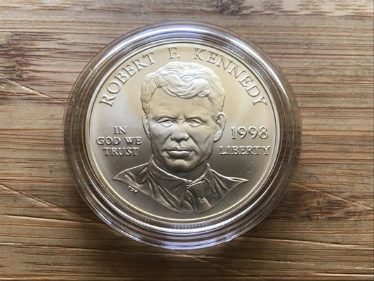 1998 S Robert F Kennedy Uncirculated Silver Dollar Commemorative RFK Coin Box and COA