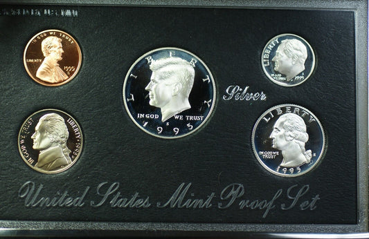 1995-S U.S. Mint Complete SILVER Premier Proof Set 5 Gem Coins with Box and COA