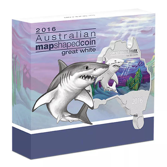 2016 Perth mint Australia $1 MAP COIN GREAT WHITE SHARK SILVER 1oz - ONLY 6000!!!