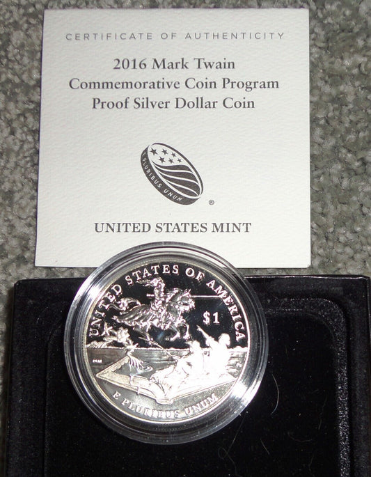2016-P $1 Proof Mark Twain Commemorative Silver Dollar, OGP & COA