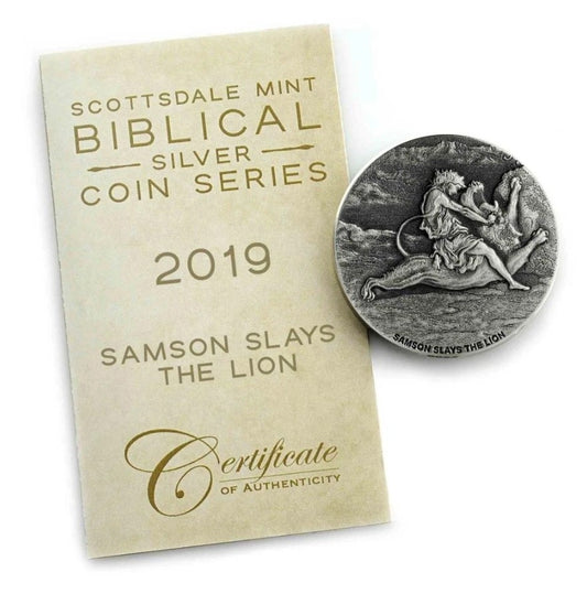 2019 2 oz .999 Silver Coin - Samson Slays the Lion - Biblical Coin Series