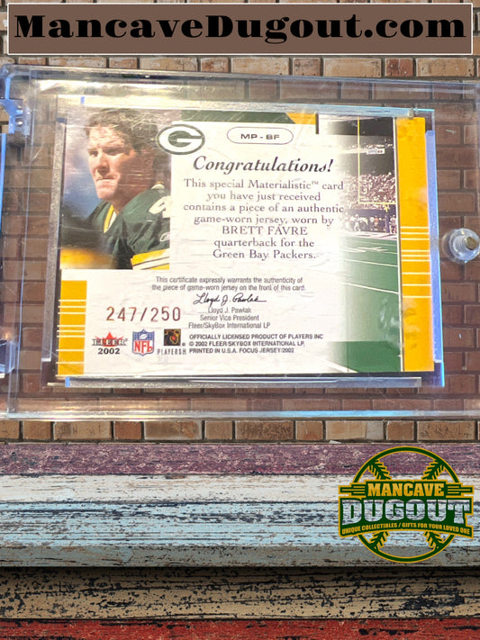 FLEER FOCUS , 2002- MATERIALISTIC- BRETT FAVRE, S/N 247/250 – NM
