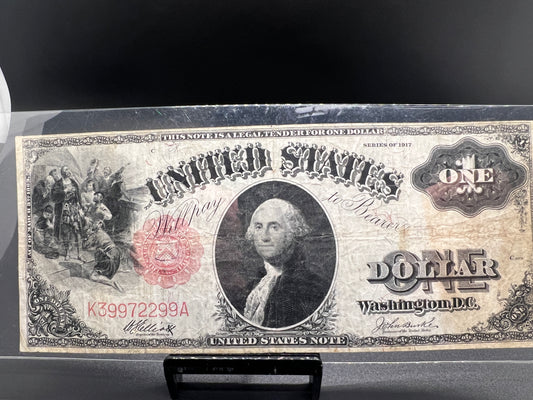 1917 $1 ONE DOLLAR UNITED STATES LEGAL TENDER NOTE SEAL RED LARGE PAPER MONEY