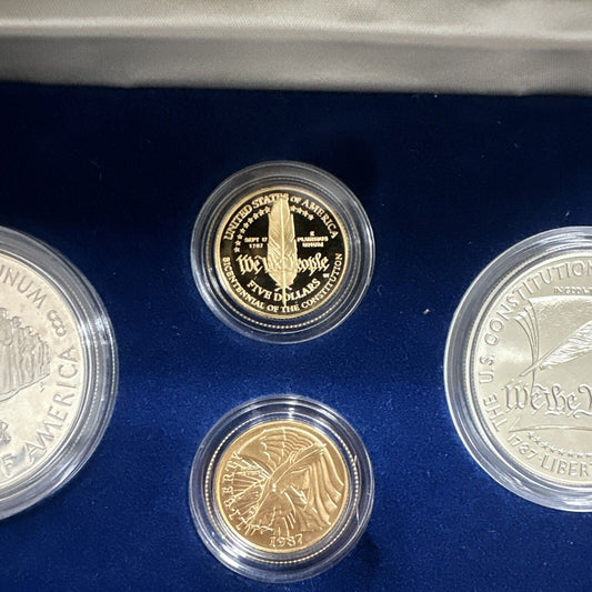 1987 4-Coin US Constitution $5 Gold & Silver Dollar Set Proof &In Box w/ COA