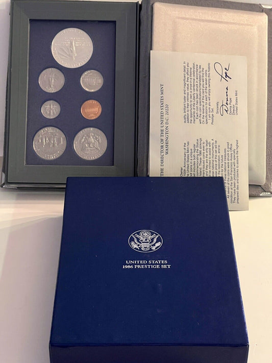 1986 UNITED STATES PRESTIGE SILVER PROOF SET IN ORIGINAL MINT FELT CASE WITH COA