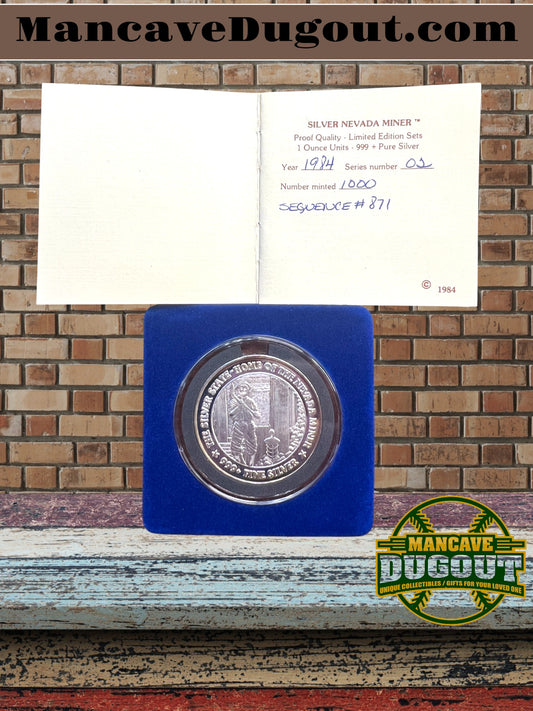 1984 “Nevada Miner” Silver Round – Only 1,000 Minted – Serial #871 – 1 oz .999 Fine Silver