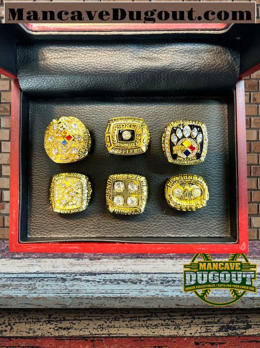 Pittsburgh Steelers 6 Time Super Bowl Champions Ring Souvenir Set w/Display Box