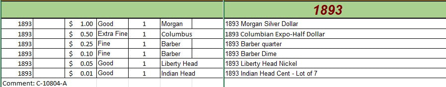 1893 Coin Set - A