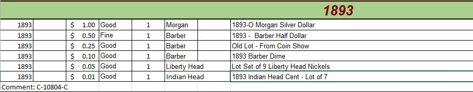 1893 Coin Set - C