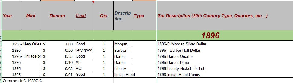 1896 Coin Set - C