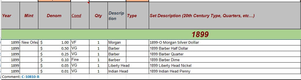 1899 Coin Set - B