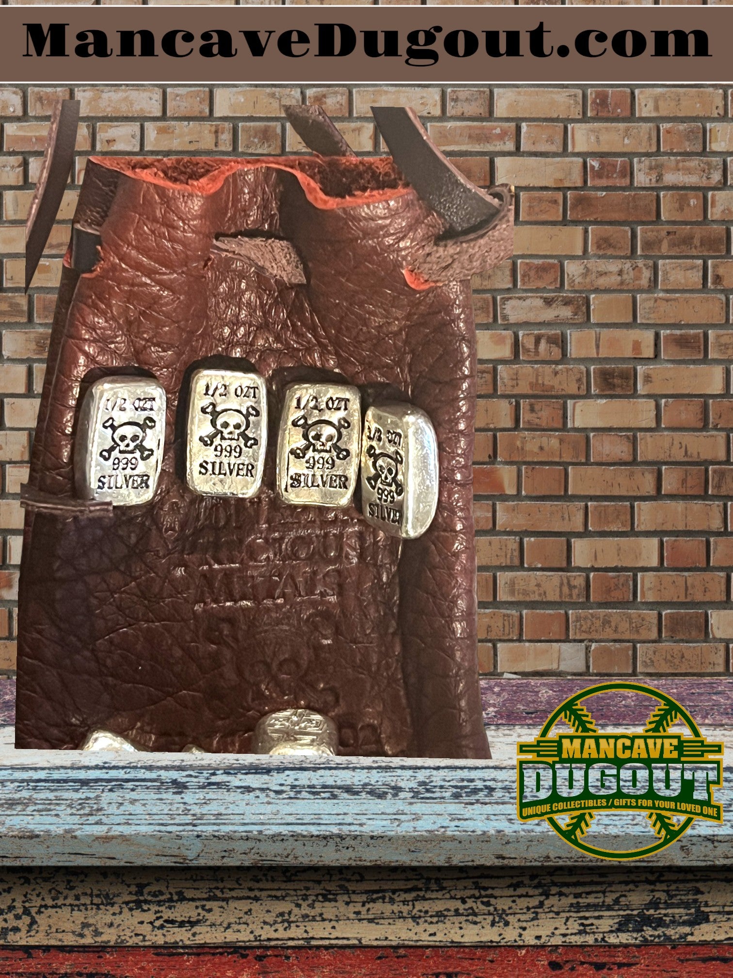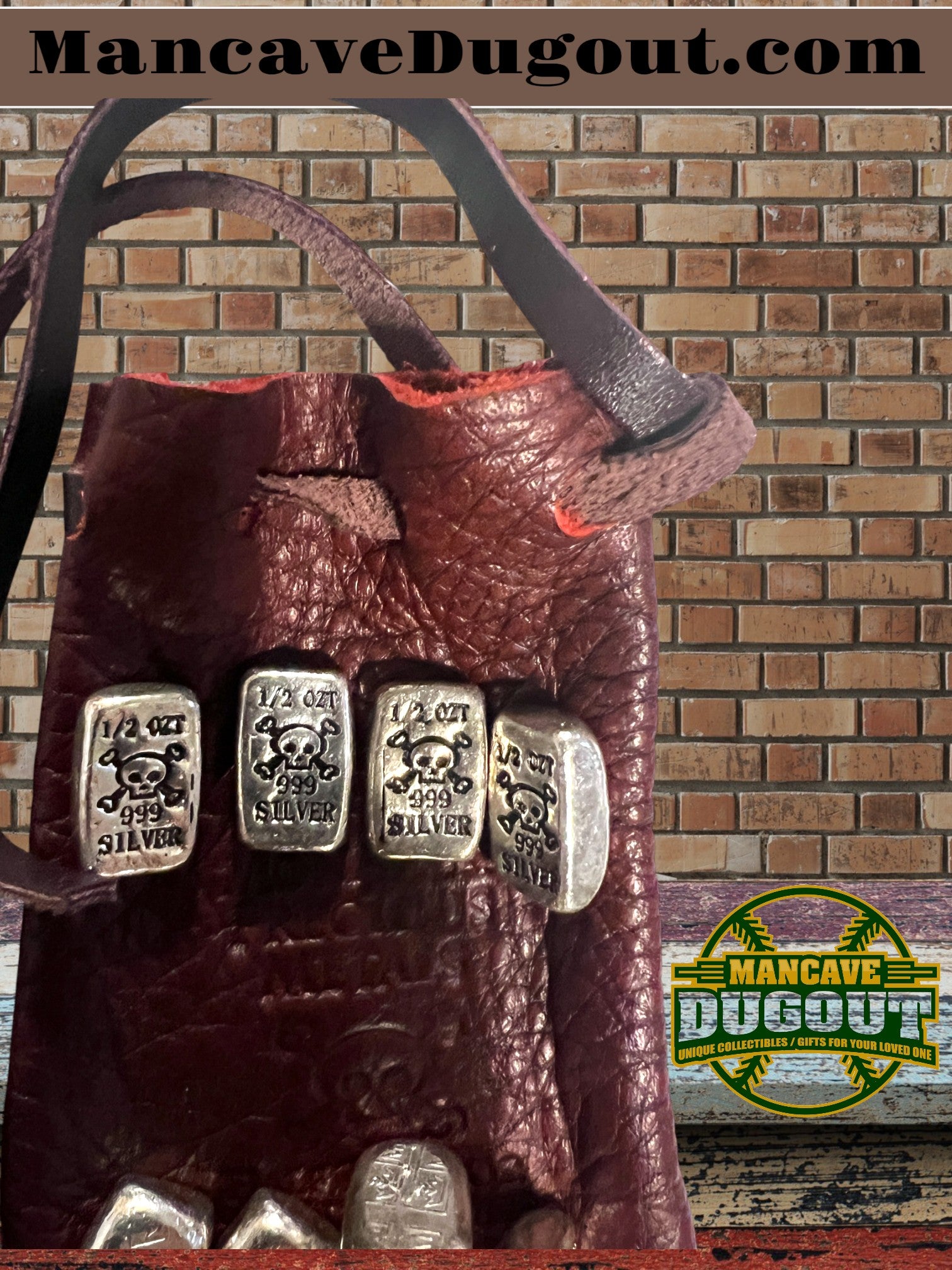 2018 Silver “Pirate Pouch” – 5 oz Total • 10 × 1/2 oz Rounds • Leather Drawstring Bag-DB