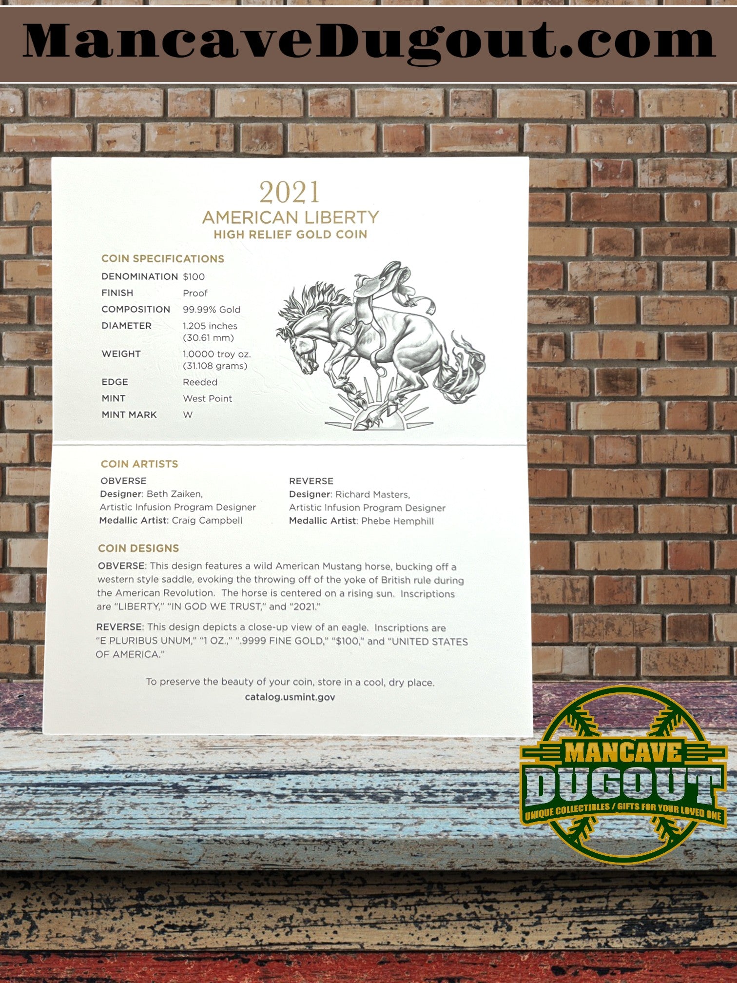 Each coin is exquisitely crafted and hand packaged in a black presentation box with sleeve and accompanied by a Certificate of Authenticity. The 2021 American Liberty High Relief Gold Coin will be cherished by collectors around the world.