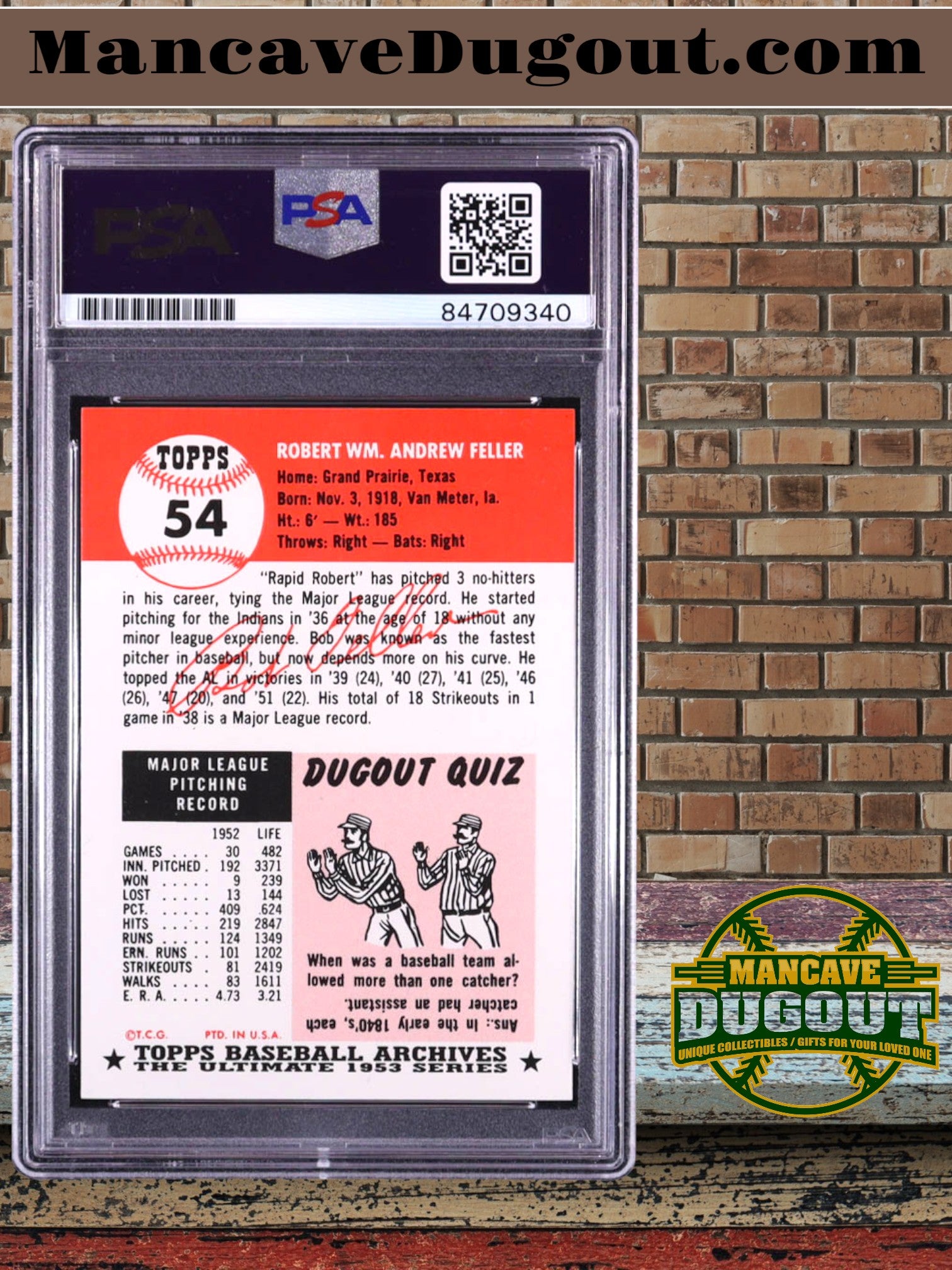 Bob Feller Signed 1991 Topps Archives '53 #54 (PSA)