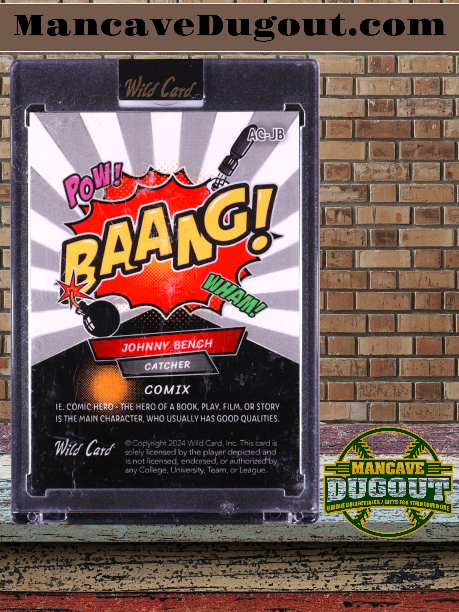 Add a true low‑print, high‑impact collectible to your lineup with this Johnny Bench 2024 Wild Card Alumination Comix BAANG! Red White Blue (#AC‑JB), serial‑numbered 2/3. This ultra‑limited parallel blends Wild Card’s bold comic‑book styling with patriotic Red‑White‑Blue foil, creating a visually explosive tribute to one of baseball’s greatest catchers.