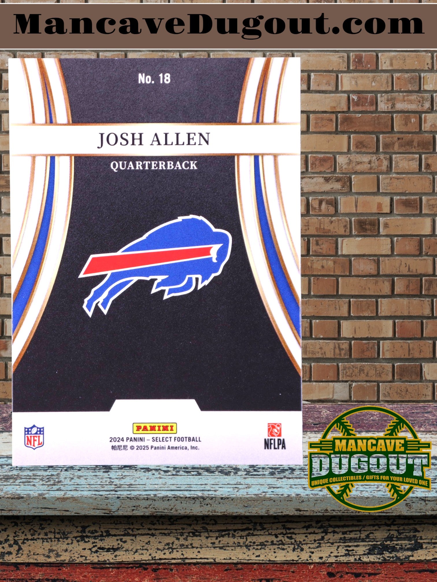 The 2024 Panini Select Turbocharged Josh Allen #18 card is a sought-after collectible for Buffalo Bills fans, featuring Allen in a unique insert design. In near mint condition, this base parallel from Panini's 2024 set is a valuable addition to any football card collection.